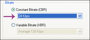 Constant Bitrate را به 24Kbps تغییر دهید و سپس Ok رو انتخاب کنید.
